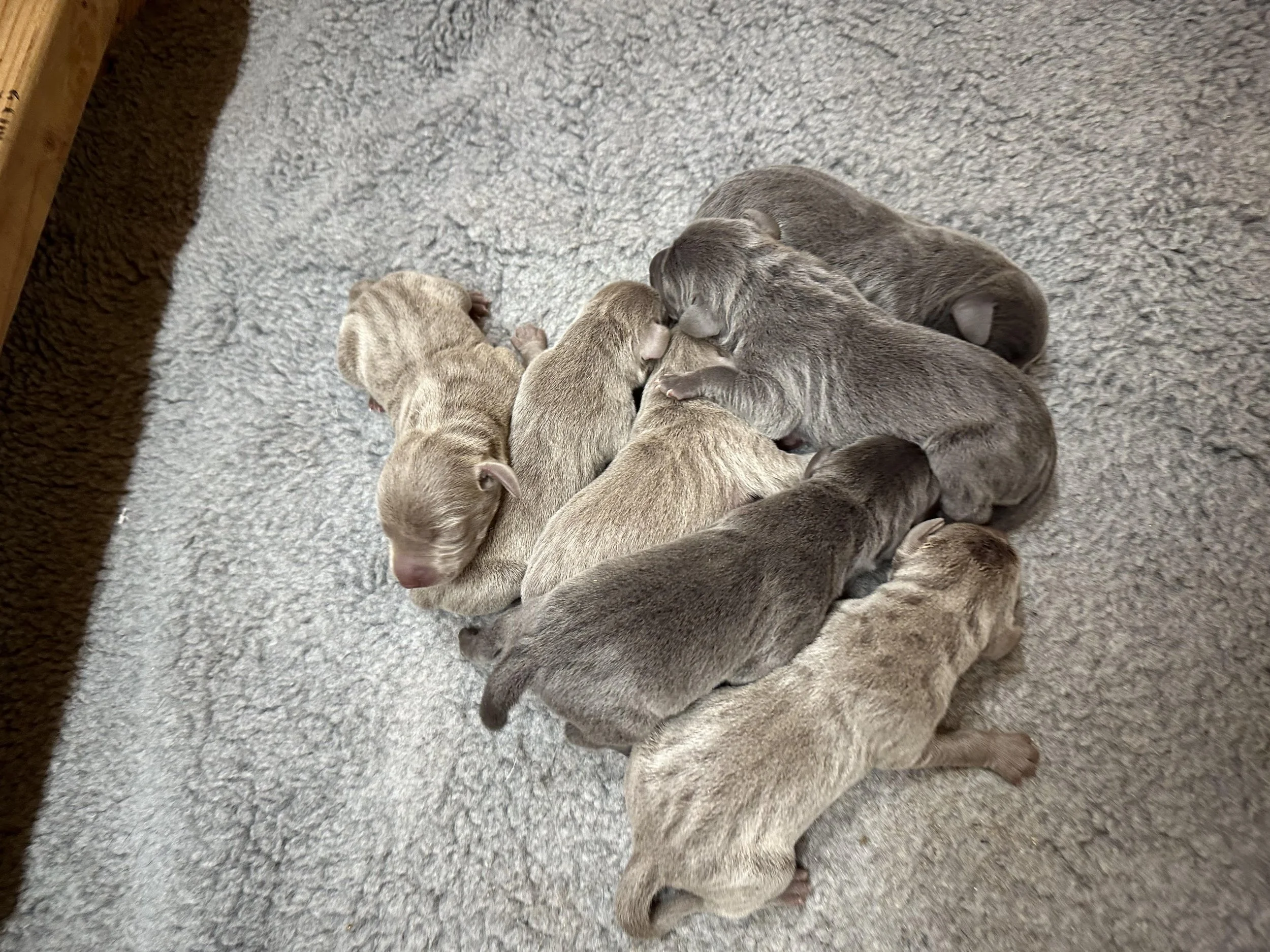 Available Puppies Out of Zeus & SiennaOur litter has arrived as of 6-15-2024 and will be available August 10th. This is our first litter out of Seinna, she is out of Full Circles Walter and Ilse. Sienna is a smaller female that loves to run and snuggle. She has a very sweet personality. Zeus